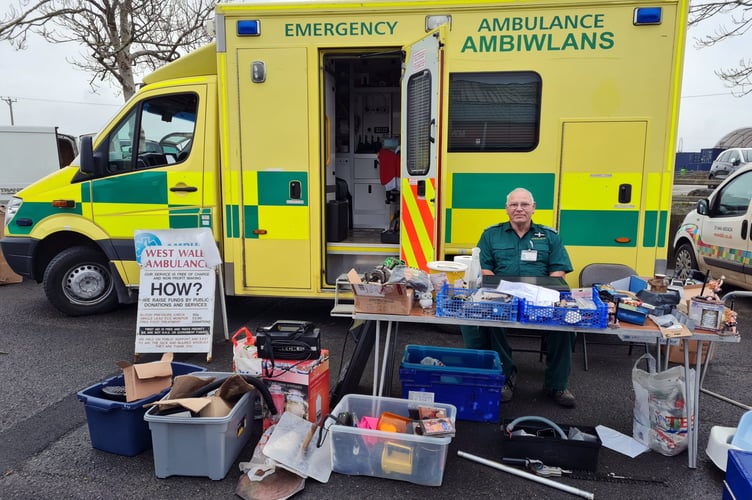 West Wales Ambulance Officer, Warren, has been helping to raise funds for the West Wales Ambulance service at Carew Car Boot Sales on Sunday mornings.
