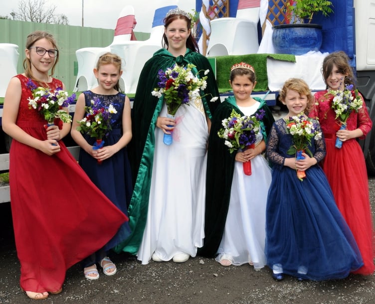 Whitland Carnival Queen Megan Jones and Rose Queen Ella Brown with attendants.