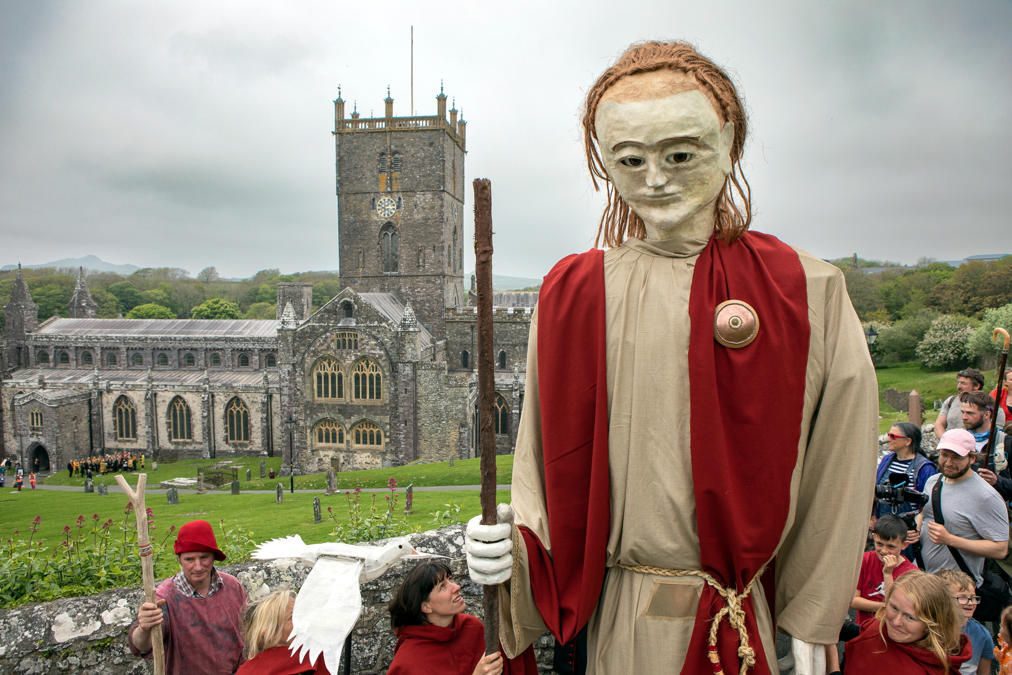 Small World Theatre is delighted to return with the 3m-tall giant puppet of Saint David and a new 6m-long sea monster in a procession through Wales’ smallest city. Thanks to pupils from Ysgol Penrhyn Dewi, there will also be colourful costumes in the festival’s Pilgrim Parade leading spectators from the Cross Square into the grounds of St Davids Cathedral. Saint David will visit the giant bee skeps created by artist Bedwyr Williams on his way to join the fun of the Fayre.