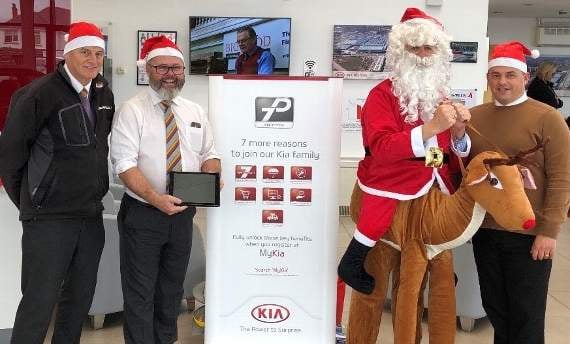 In October, Santa was doing his early rounds in the district checking out children’s addresses in the new housing estate in Narberth. With his trusty companion Rudolph he pulled into Gravell’s Kia Garage on Redstone Road asking for help.