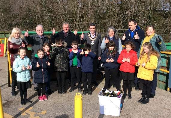 Local school children have given their thumbs up to the recycling centre in Whitland being saved.